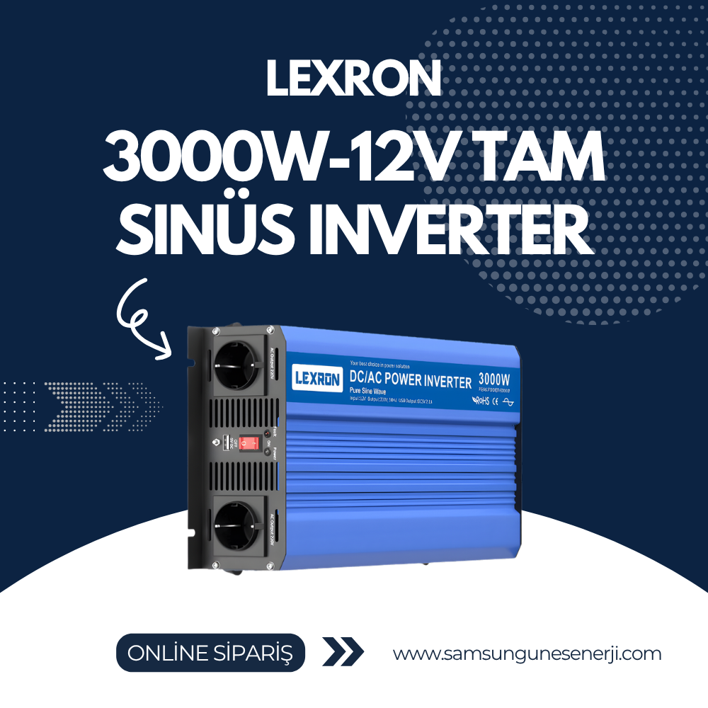 3000W 12V tam sinüs inverter, hassas elektronikler için stabil AC güç sağlar, karavan ve güneş enerjisi sistemlerinde yüksek verimli kullanım sunar.